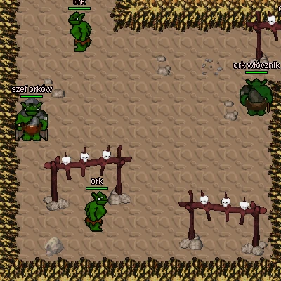 W podstawowej części wioski mieszkają zwykłe orki, ale szybko trafisz też na włóczników, wojowników i łowców. Każdy z nich ma inne statystyki – np. włócznicy są szybsi, wojownicy wytrzymalsi, a łowcy potrafią zaskoczyć siłą ataku. Na końcu czeka szef orków – najtrudniejszy przeciwnik w całej osadzie.